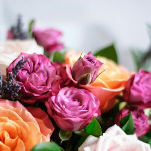 Please note: The picture shown is to the value of £60 and is an example of The Rambling Rose, designed to give you an idea of the bouquet style. Each order is lovingly created by hand and individually designed using the best of the season, so will vary from the image here.